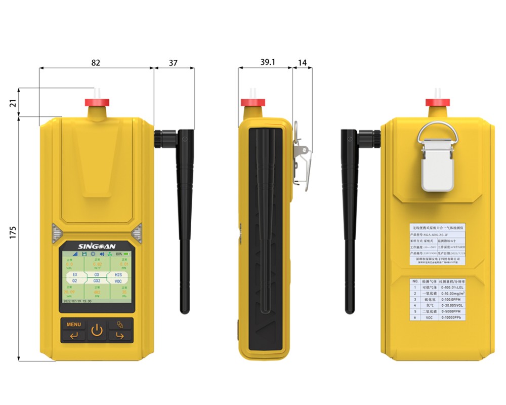 SGA-606系列便攜式復(fù)合型八氯化萘氣體檢測(cè)儀是深國安運(yùn)用十多年氣體檢測(cè)儀生產(chǎn)經(jīng)驗(yàn)與先進(jìn)無線傳輸技術(shù)相結(jié)合,專門針對(duì)多氣體檢測(cè)需求的客戶所研發(fā)生產(chǎn)的一款手持便攜、本安防爆、監(jiān)測(cè)報(bào)警、智慧物聯(lián)為一體的無線手持式多合一氣體檢測(cè)儀表;產(chǎn)品可根據(jù)客戶需求個(gè)性化定制1-6種氣體進(jìn)行組合,氣體不限、量程不限、檢測(cè)原理不限;還可擴(kuò)展溫濕度、大氣壓等環(huán)境監(jiān)測(cè)指標(biāo);現(xiàn)場(chǎng)濃度達(dá)到國家規(guī)定的安全限值后,會(huì)自動(dòng)發(fā)出聲光振動(dòng)三種報(bào)警方式進(jìn)行提示;還可通過內(nèi)置無線模塊,將數(shù)據(jù)實(shí)時(shí)發(fā)送到深國安物聯(lián)網(wǎng)平臺(tái),方便上級(jí)領(lǐng)導(dǎo)或監(jiān)管者隨時(shí)登錄PC端或手機(jī)APP端查看數(shù)據(jù);如現(xiàn)場(chǎng)濃度超標(biāo),還會(huì)通過預(yù)設(shè)的郵件、短信、微信小程序等進(jìn)行消息推送;讓人員更安全,管理更高效;