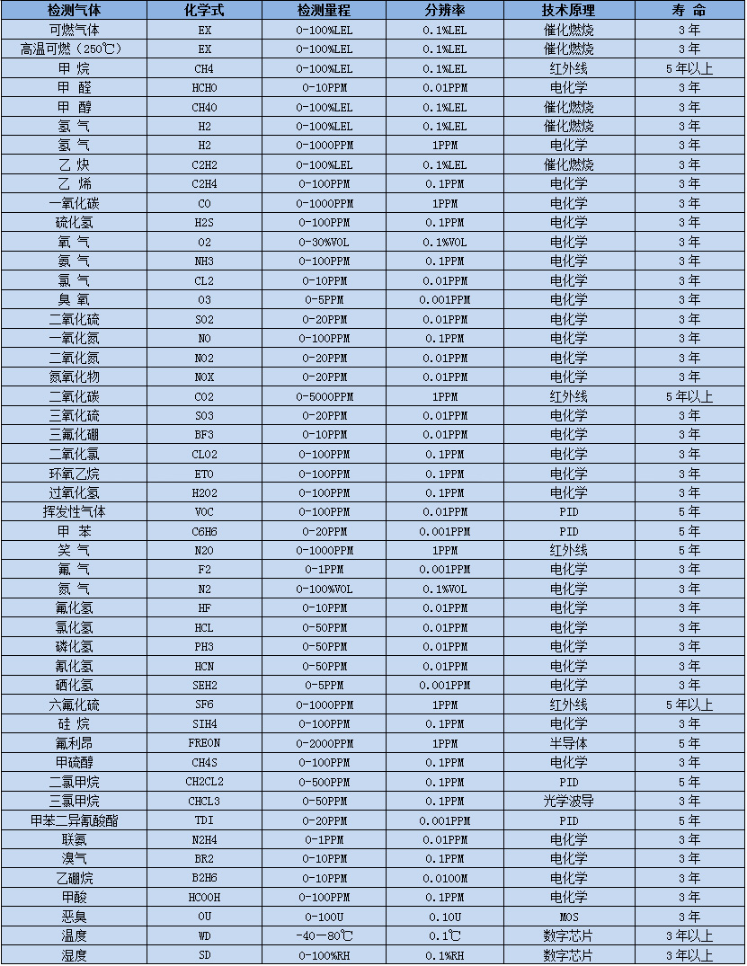 ※另有1000種氣體和量程可選,詳細請咨詢深國安銷售人員!
