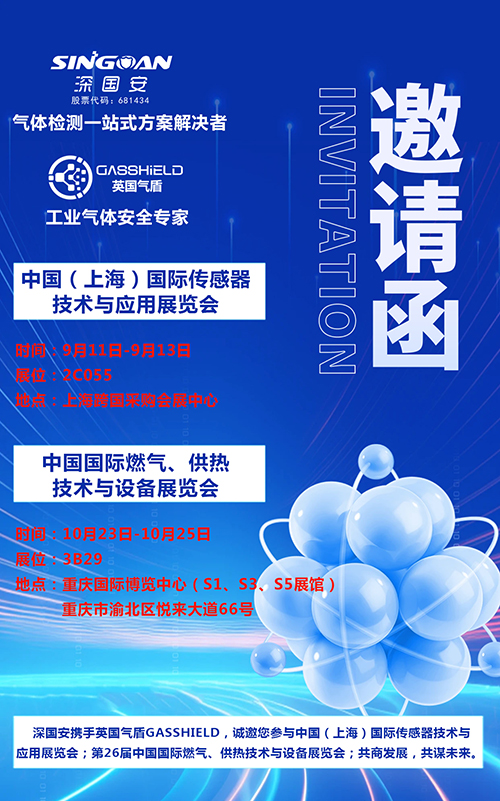 展會預告!深國安攜手英國氣盾GASSHIELD,誠邀您參與中國(上海)國際傳感器技術與應用展覽會(9月11日-9月13日);第26屆中國國際燃氣、供熱技術與設備展覽會(10月23日...