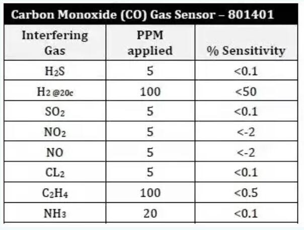 (10)這些化學過濾器的有限壽命不同于電化學氣體室的壽命。因此,CO氣體傳感器在大量暴露于某些干擾氣體后,對這些干擾氣體的交叉靈敏度會增加。
